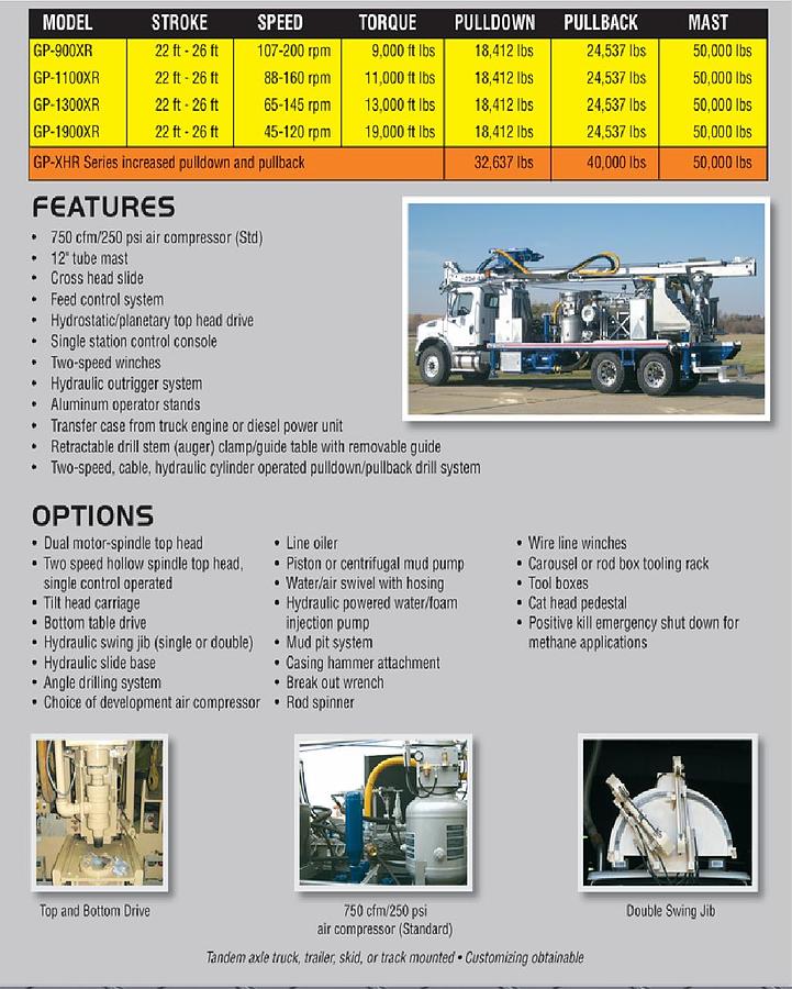 - Two-speed, cable, hydraulic cylinder operated pulldown/pullback drill system