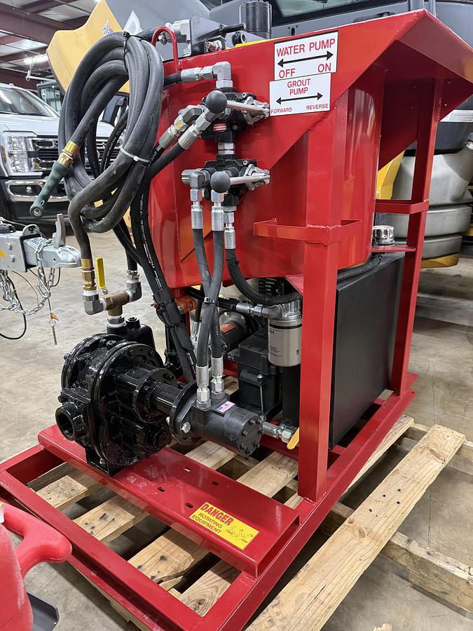 Thorough mixing of the grout accomplished by the unique design for the mixing paddles and hopper baffles.